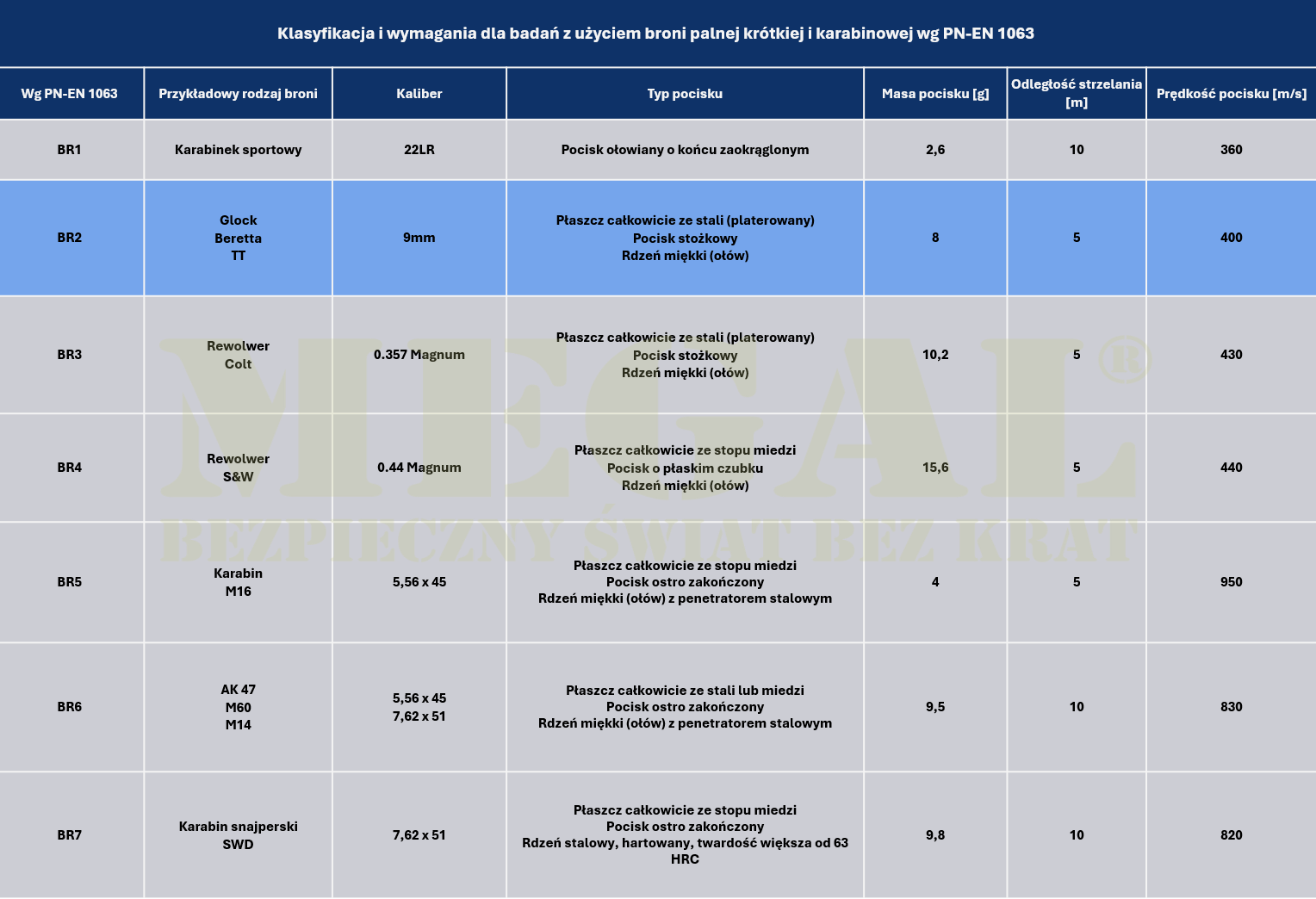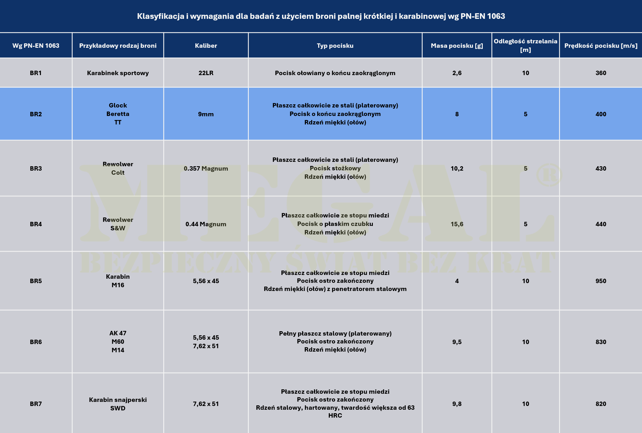 Szyba kuloodporna MEGAL w klasie BR2"S" to szkło laminowane, które zgodnie z normą PN-EN 1063:2002 zapewnia ochronę przed ostrzałem z broni krótkiej, w szczególności przed amunicją pistoletową kaliber 9 mm. Jest to jedna z podstawowych klas ochrony balistycznej przeznaczona do zabezpieczenia ludzi i mienia przed typowymi zagrożeniami związanymi z użyciem broni krótkiej.
