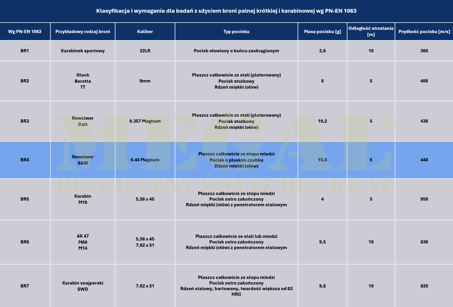 Klasyfikację określa norma PN-EN 1063:2002, zgodnie z którą do każdej wyprodukowanej szyby wydajemy certyfikat potwierdzający klasę wyrobu na podstawie otrzymanych atestów przez międzynarodowe jednostki certyfikujące. Szyby kuloodporne o specjalnym przeznaczeniu muszą w pierwszej kolejności chronić życie ludzkie lub wartości, które za nimi się znajdują, dlatego dokładność i jakość wykonywanych przez nas produktów potwierdzamy regularnymi badaniami.